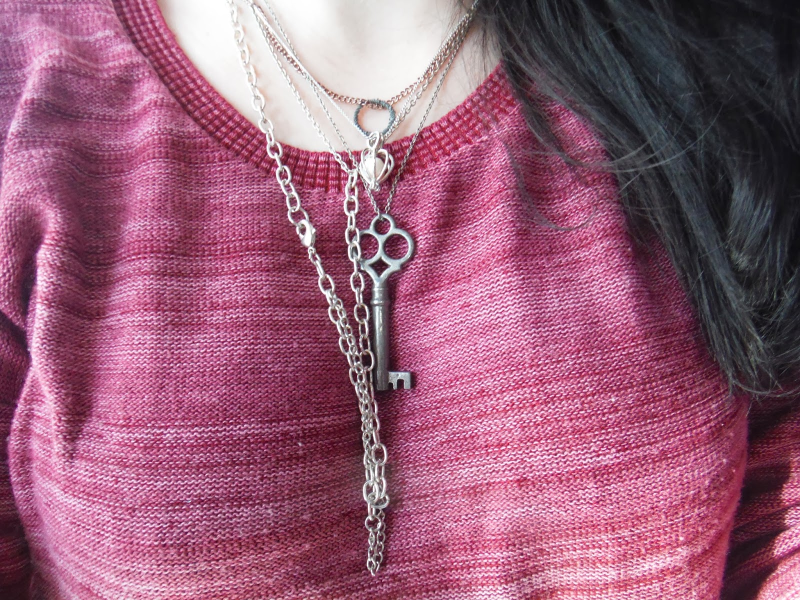 How many necklaces is too many? I'll argue that the simpler your outfit is, the more accessories you can pile on. These necklaces are homemade except one that was a gift (I went through a phase in which I was convinced I'd open a jewellery store). The circle pendant is one of many I've made, I usually wear a silver-y one but I broke the chain the other day and don't have a replacement yet. Sad. The lip ring is fake (though I desperately want to get my lip pierced) and I went out of my comfort zone with earrings. I guess I was just in a mood.
